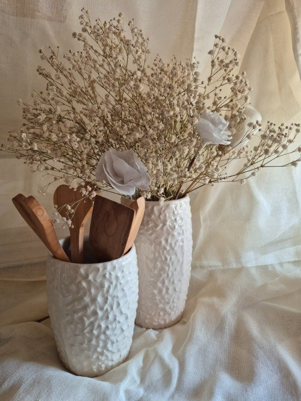 Florero con textura en crema alto y bajo